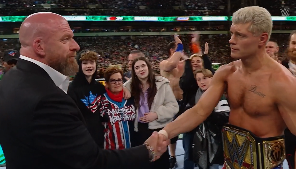 Post Match: Cody brings out Bruce Pritchard and Triple H to celebrate with him. This does feel like a new era. It’s nice to see so many happy smiling faces in the ring at the end of Wrestlemania. This feels like a win for wrestling. So often the guy who wins the main event at Wrestlemania ends up standing alone in the ring, hogging the spotlight. This feels so totally different.