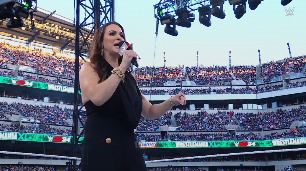 She happily calls this the first Wrestlemania of the Paul Leveque Era. Can’t spell “renaissance” eh? A quick word on Samantha Irwin, because I saw people putting her over yesterday. She’s one of the best ring announcers the company has ever had. Straight fire.