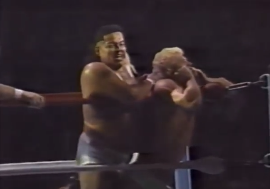 Invader is also an awful wrestler. Garvin makes matters worse by playing a chickenshit heel character. It doesn’t suit him at all. ALSO, it’s a taped fist match, and Garvin’s fists are not taped. This is another dog ugly, boring match. Invader is absolute shit. He can’t bump, he can’t sell, his timing is dreadful. Invader finishes with a heart punch, which Garvin treats as the stupid move that it is by selling it all wobbly legged. This was pure shit and a clear DUD. I hope I never see Invader #1 ever again. He’s one of the worst workers who’s not in the ‘clearly not a worker at all’ column*.
