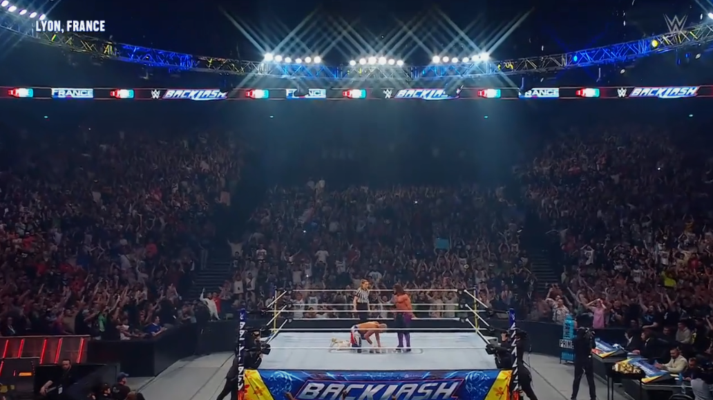 We’re in Lyon, France! For a PPV and everything! Michael Cole has to explain where it is because it’s not Paris. Honestly though, a great call. Go to areas that don’t get big shows very often and get that fired up crowd.