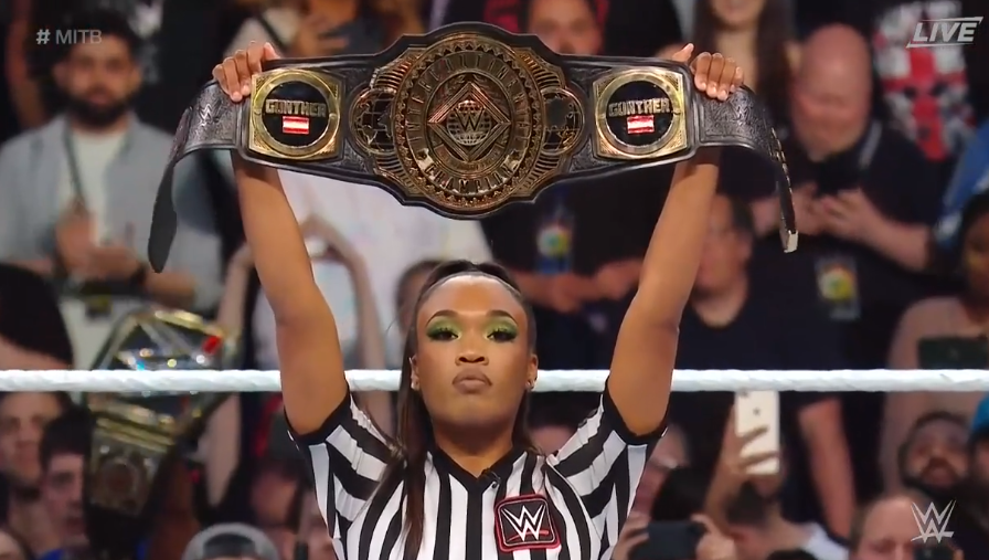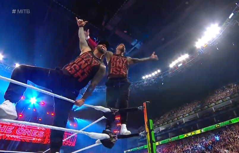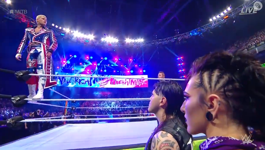 Iyo is so great at everything. Just literally everything. She’s too good to be champion because whatever and whoever WWE put her in with, she gets results. One thing that irks me about these matches is the need to climb the ladder on the hard cam side. So, you know who’s winning because they climb the side facing the hard cam. Part of WWE’s general stupidity because they need a perfect shot for the camera. Zoey Stark has a great match. She takes some big bumps including a huge powerbomb off the ladder into another ladder. Both Bayley and Lynch have some issues with the ladder and spend ages adjusting it for some reason. Presumably TV purposes. Just let them go guys. In a genius spot Iyo handcuffs Bayley to Becky, who already had the handcuffs on thanks to Trish. Then she climbs over Bayley and gets the briefcase.