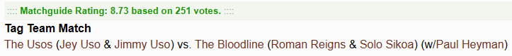 The Cagematch rating for it is insane. 8.73? You think this is a ****+ match? Get the fuck out of here with that bullshit.