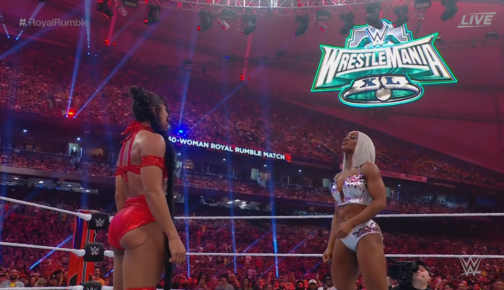 They only named EIGHT competitors for this match. Imagine the possibilities. #1 is Natalya. #2 is NAOMI. I guess she’s forgiven the company for treating her like shit. Her hair is amazing. Amay-yay-yay-yay-zin. Crowd is pumped already. You throw out a popular surprise right off the bat and now the crowd is thinking…what else is coming? The work is awful but hey. #3 is Bayley. The good news here is that the crowd are in and the product feels fresh. The bad news is the normal clusterfuck issues of the Rumble have kicked in and we’ve only got three people in here. #4 is Candace LeRae. #5 is Jordynne Grace, on loan from TNA, as Corey starts popping off TNA booking of late. What is happening?
