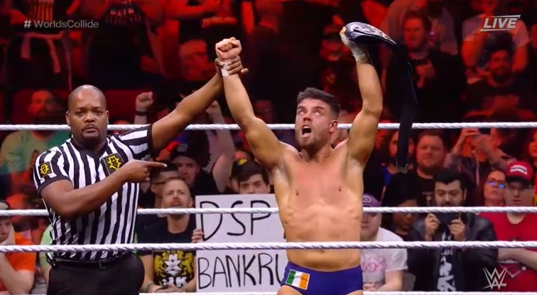 Tyler and Gargano do a lot of parity work. Trent brings the comedy, making a point of not doing the bodyguy pose off with the ripped Ciampa. In the space of a minute Ciampa gets to rip BritWres for a lack of conditioning and a lack of height. He really got us there, man. The character work is good here. Tyler and Ciampa both doing their patented waves is fun. As is DIY doing the sit down pose thing. It’s a combination of playing the hits and blending the two teams highlights. I’m not completely sold on everything but there a lot of very good counters where one attempted signature move is countered into something else. Which you can put down to both teams having done their research. The Airplane Spin/Gargano Escape spot is particularly good. They do a lengthy ‘breaking down’ sequence that seems to peak and then keeps going! Trent Seven is a fantastic ideas guy and I’m sure he had a lot of input into how this was put together. DIY put together a run of moves to finish and double superkick Tyler out of the ring to give them time to finish Seven. They went in for a huge hot sequence to end the match and all of it landed. Great match.