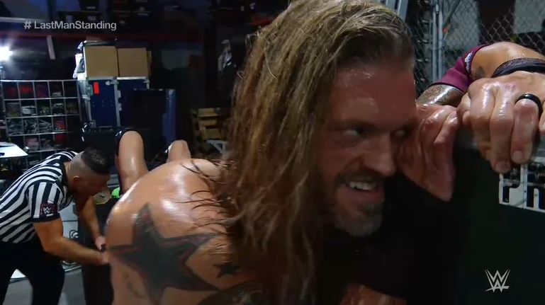 Lukas has a point in our chat where Orton is great at selling the story and getting you invested and then it’s the same boring old shit as always. This match is a labourious walk and brawl. It’s boring old shit with an obvious camera cut when the cameraman gets bumped. This has Triple H’s finger prints all over it. It’s way too long and it’s really, really boring. Imagine having Edge back for the first time in almost a decade and this is the match.