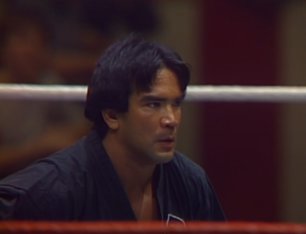 Muraco resorts to wrestling, having failed to match Steamboat’s martial arts ability. Steamboat gives us a look of ‘oh, we’re going to wrestle then? Ok’. The match slides in and out of the gimmick with Steamboat choking Muraco with his gi and Muraco hitting Steamboat with a chair. Are chair shots legal in martial arts? We get some dated references to Bruce Lee. Bruce had been dead for over a decade at this point, although arguably still relevant thanks to cable TV. The match becomes increasingly violent as Steamboat blades and the choking continues. Muraco’s mean spiritedness and Steamboat’s selling make for a good contest, once they’ve gotten past having to use the gimmick of the stipulation. Steamboat fires up Milton Bradley Karate Fighters style.