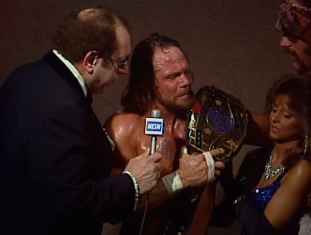 Savage is wearing yellow to match the Boston Garden floor and he goes outside a lot to show us that’s the case. The referee here is Danny Davis, future villain, and he takes a minor bump in this so Tito can get the visual pin. Savage struggles with a leg injury but uses it as a way to hide in the ropes. Tito goes to suplex him back in but Randy smacks him in the face with a foreign object to win the belt. I’ve seen him do this finish already in the WWF. It’s a shame he didn’t waffle Tito with it and then hit the big elbow but he’s still selling the leg. A good match and a historically important one.