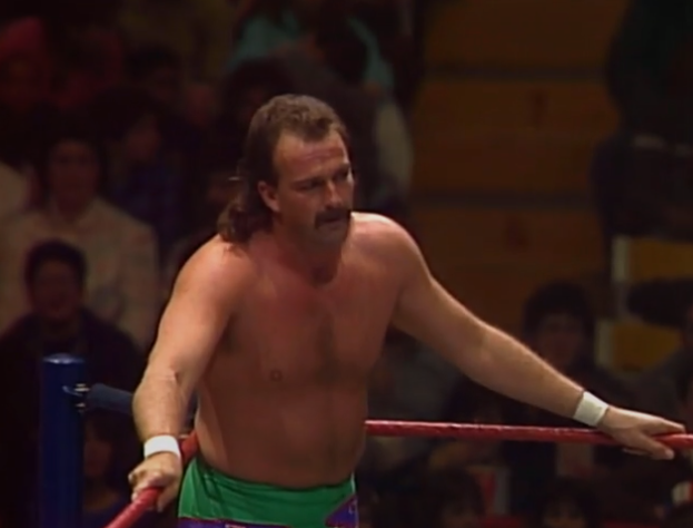 Randy is caffeinated this evening. He looks twitchy, yells at the fans and the commentators before getting into the ring and takes multiple powders before the bell rings. When Tito eventually catches up it turns into a wild brawl. Savage was masterful at being a chickenshit heel but also switching in an instant from ‘running away’ mode to savage attack mode. Despite all that running away, he never felt like a coward. Just an opportunist. Tito breaks himself here by hitting his Flying Forearm and then not pinning. What are you doing? Savage tries to run again, Tito won’t get off him and Danny Davis loses control. Santana throws him across the ring and that’s a DQ. Should have just pinned him after the forearm. **½. A good match but it never reached the higher gear both guys are capable of. I have a strong suspicion that Savage was supposed to go into the ropes after the forearm.