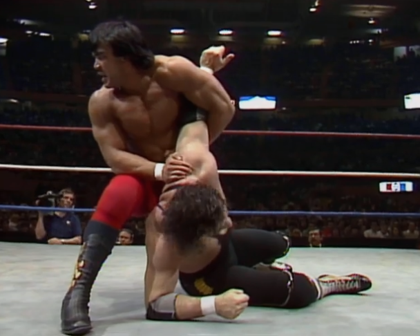 This is a contest between two guys who fancy themselves at taking bumps. While Bret’s are more realistic, Steamboat’s are sensational. The snap on everything is elite here. Two guys who could do everything. The only major issue stems from the reliance on rest holds in between the good stuff. Bret’s execution is on point. They do a weird thing here and have Bret get a visual pin with the ref down. As soon as the ref is back up Bret goes for a crossbody and Steamboat rolls through it for the pin. Naturally, this was good and much better than anything else on the card. ***. It’s a match with some issues though. The weird finish and some needless rest holds included. Everything else was executed to perfection though.