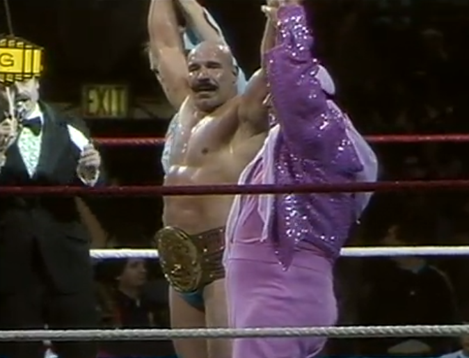 Santana would be one of Vince’s go-to guys and one of the most consistent in-ring performers of the following 7 years or so. He only came to the WWF in 1983 and he’s lacking in gimmick. This is Koloff’s last WWF match, ever, so they could have run a “loser leaves town” match to properly pop the MSG crowd who are already mad that Backlund lost. Koloff is best known for his NWA work, although he did hold the WWWF title back in 1971 in another famous transitional run.