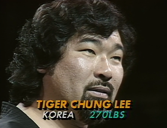 Tiger Chung Lee is, predictably, not from Korea but rather Japan. Well, if you’re a Japanese national you’d probably call Lee a Korean because he does have Korean blood. His real name is Masanori Toguchi. You may know him by the name Kim Duk, which is what he wrestled under in most places. Or as Charles Dance’s henchman in Eddie Murphy comedy the Golden Child. Bellomo is billed as an Italian American and they were probably hoping he’d recapture that Bruno Sammartino spirit. Which is funny because Bellomo is Belgian (albeit of Italian descent). Bellomo’s career is far more interesting than this match. He started out wrestling at carnivals in Belgium before moving to the UK to learn the British style. He then moved to Mexico and worked for EMLL before a move to Canada and Stampede. He also worked in Japan before signing for the WWF in 1982. His career is the template for guys like Bryan Danielson and Chris Jericho who wanted a rounded style based on travelling and experiencing other wrestling cultures. At this point Vince still wasn’t sure whether to push him or not. After a year of watching him in boring soulless midcard matches Bellomo had been turned into a jobber. He was released in 1988 and went on to work Catch in Germany and was a regular in early ECW.