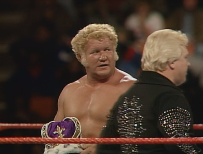 Back in the studio Monsoon grills Heenan about the Bundy ‘midget’ match at Mania and he doesn’t care. Even Heenan can’t bring himself to give a shit about that match.