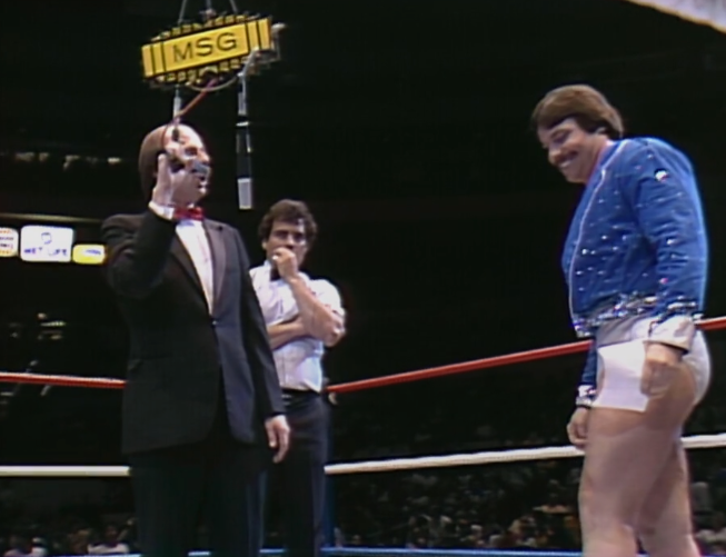 This is where the match could have gotten interesting as the MSG crowd want them to start popping each other with right hands. Both men supress their urges and remain good babyfaces. The match is so boring they cut back to the studio. “Who cares?” – Heenan. We head back for the finish and they’re still exchanging mat holds. Some of it is ok but neither of them are good enough at mat work for it to be exciting. When they try other things it’s even worse. An Irish whip is bad. A biel out of the corner is bad. Atlas has no idea how to control a match. Atlas wins with a backslide. Jeez, this was dull.