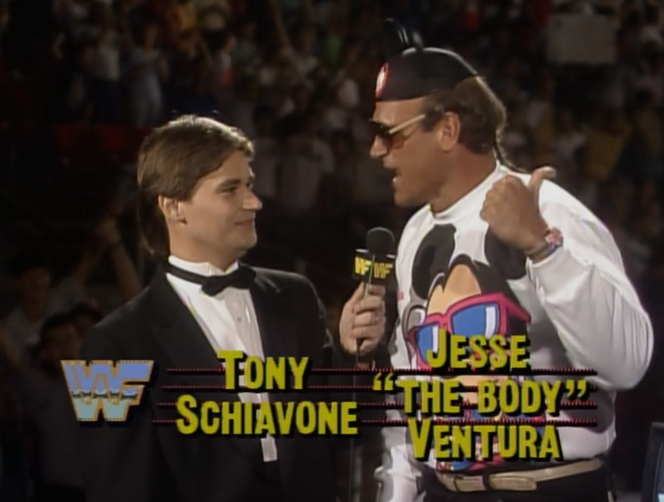We’re in Orlando, Florida at the Orlando Arena. This is a fairly new building but, because this is America, it’s already been demolished. The NBA’s Orlando Magic played here from 1989-2010 and it also housed some other sports teams. It was renamed the TD Waterhouse Centre in 1999, closed in 2010 and was demolished in 2012. Other wrestling events that took place here include WCW’s Bash at the Beach 1994 and the 2008 WWE Hall of Fame ceremony. Hosts are Tony Schiavone and Jesse Ventura. This is Tony’s second, and final, WWF PPV event before heading back to WCW, where he would stay until it’s closure. I wonder if he regrets that move? I know he did right afterwards because WCW wasn’t in a good place, and he asked to come back.