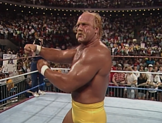 We get yet more comments after that. Randy Savage, as royalty, feels he should win. It’s funny that he lists his main rivals as Hogan, Andre, Roberts and Piper, completely overlooking Warrior. Rightly so. Hulk Hogan’s promo focuses on Hulkamania and how strong it is. “As strong as it’s ever been”. “At it’s peak”. Some people are saying there are more Hulkamaniacs now than at any point in history. It’s not just bluster anymore and he’s now lost his shine. Vince clearly thinks Warrior is ready to take his spot and our Terry is getting a wee bit nervous about it.