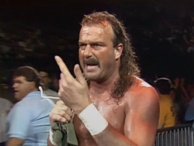 Duggan’s run of house shows with Randy Savage is over so he’s stopped caring. At least this is Bossman in singles so I don’t have to watch Akeem too. Bossman is about to turn face, so it’s a little weird they even ran this match. By Mania he’ll be working against his former partner Akeem. Ray tries like hell to make this match interesting by throwing himself into his bumps. Slick pops me by yelling “let that be a lesson to ya, crooked eyes” at Duggan.