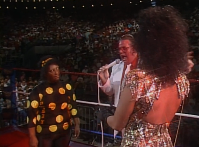 Ventura puts Tony on the spot and asks which woman he’d rather date. Tony doesn’t say Sapphire, the babyface, let’s just leave it at that. I’d forgotten how tiny Sapphire is. She’s way shorter than Sherri.