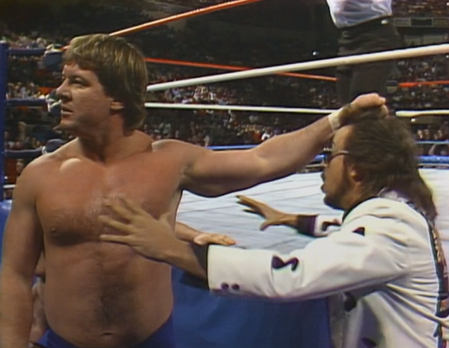 Backstage we catch up with Bobby Heenan and Paul Orndorff. Heenan claims Orndorff won that match and he’s taking the footage to Jack Tunney. Heenan promises the title to Orndorff. It would never happen, and he wouldn’t even get a shot. By March he’d be on the shelf injured and by the end of 1987, he’d have to retire, albeit temporarily.