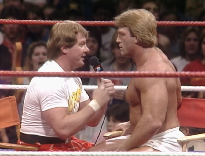Piper is keen to make amends, but Orndorff has no interest in playing nice. Piper blames Orndorff for losing the main event at WrestleMania. Piper calls him “a piece of garbage” and goes to sucker punch him. Orndorff goes to hit the piledriver as revenge but Orton nails Orndorff with his cast. Mr. T runs down for the save. The whole angle would turn Orndorff into one of the WWF’s most over babyfaces. We cut to Hulk Hogan being interviewed and it’s notable he didn’t make the save for Orndorff.