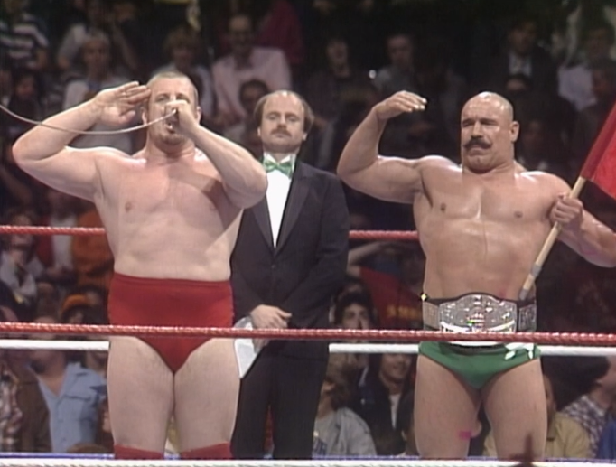 We’re in Uniondale, New York at the Nassau Coliseum. It’s weird not seeing a show in MSG at this point as WWF have run all their big shows at MSG since 1983. SNME came about because the WWF was smoking hot and NBC needed some cheap content to fill in for Saturday Night Live when it wasn’t airing. The result was Saturday Night’s Main Event. Getting eyeballs on all of Vince’s talent and the company getting more and more popular. The crossover with MTV had already done huge TV numbers. The first SNME would do an enormous 8.8 rating. The Rock N’ Wrestling Connection had officially catapulted the WWF back into the big time. Vince’s gambles (Hogan, Cyndi Lauper, WrestleMania) had all come off and he was riding the crest of a high and beautiful wave. Speaking of Vince McMahon, he’s host for this alongside Jesse Ventura. I’d much rather have the Gorilla-Ventura pairing but hey, it’s his company if he wants to ruin commentary he can.