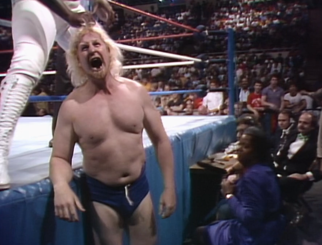 “Eye of the Tiger” is dubbed for “Real American” on the Network sadly. As much of a banger as that is, it’s not Eye of the Tiger. In keeping with the quick pace of the show this is also a brief contest with lots of Hogan offence. They do run the Hogan formula, where Hulk sells for a big chunk of the match. This is the first time I’ve seen it applied like this. I guess they figured out Hogan’s inability to structure a match and just let his opponent do it. The Hulking Up is employed, again the first time I’ve seen him do it. Instead of that leading to a hot finish, we go back to heat. Hogan would figure this out during 1985. Hogan gets the legdrop but Piper leans in there and socks Hogan in the face for the DQ. This was really good and had the kind of structure that favoured Hogan’s personality and skillset. **¾