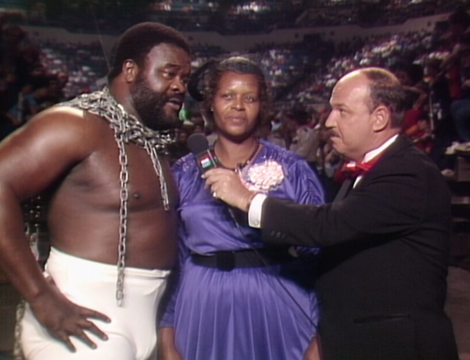 Junkyard Dog has brought his momma to New York for this show, as it’s Mother’s Day. Bertha Dog shoots on Gene Okerlund by slyly suggesting they’re keeping his son on the road too much.