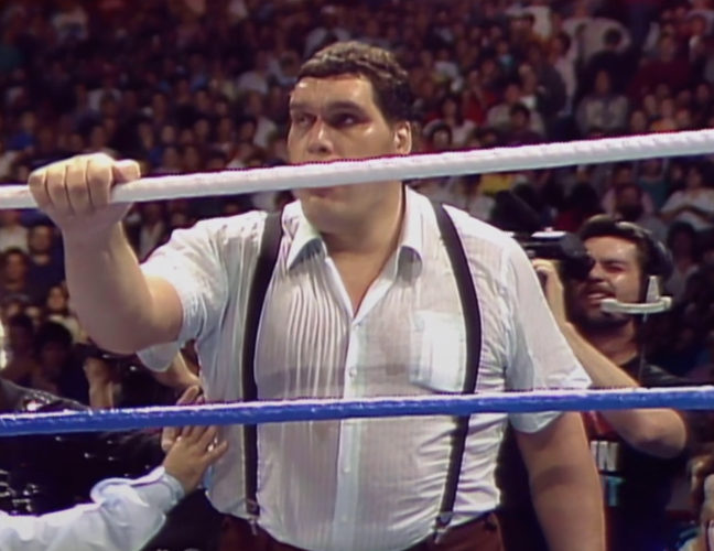 This is surprisingly animated for Hogan vs. Bundy until Bundy hooks a chinlock. It picks up again towards the finish but Andre trips Hogan up for the DQ.