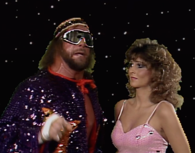 Randy Savage welcomes us from “east of Mars, north of Hell”. He claims Honky Tonk Man “maimed” his manager Elizabeth and he’s after vengeance. Maimed is a stretch. He pushed her over.