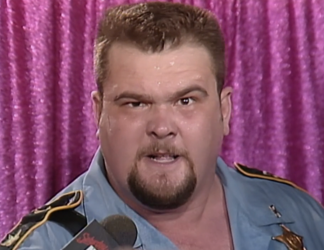 Boss Man declares Jim Powers as being “guilty” and Okerlund asks him of what. The reply; “breathing”. The WWF has given up on the Young Stallions and Powers is now a career jobber. Powers runs right into the Boss Man Slam after a couple of minutes.