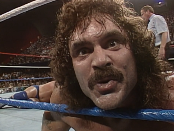 Rude spends most of the match pinballing around, taking bumps while the crowd pop loudly. Duggan always struck me as being so clumsy in the ring that he had to be miopic. The match is obviously not very good, but it is, at least, over and Rude continues his 1989 run of trying to make people look better than they are. The era is swiftly approaching where guys like Rude would get the belt, not just make the hand-picked idiots look good. He loses on count out here. Couldn’t they have put him over Duggan? Or would that have made him King Rude?