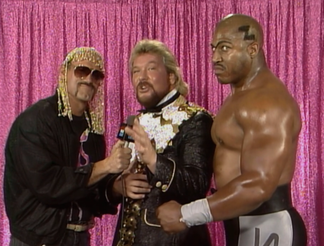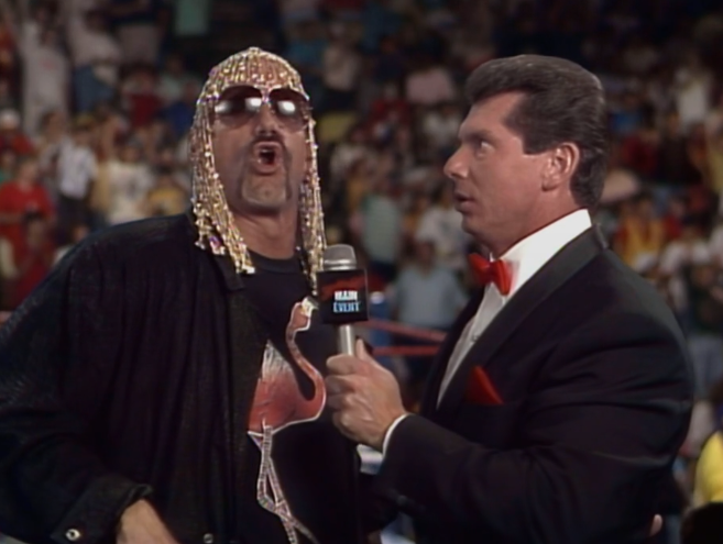 Here he makes fun of Bobby Heenan’s weight, calls Haku “Sneezy” and points out how rubbery his lips are. Yes, really. It’s weird and quite racist. In life, in wrestling, in anything really. It’s like Sick Boy says in Trainspotting. “You have it, then you lose it, and you never get it back”.