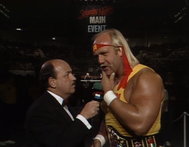 Bobby Heenan and King Kong Bundy demand a shot at Hulk Hogan and the WWF title. Bundy seems confused and thinks he’s got a shot. Well, he has, but we don’t know that yet.