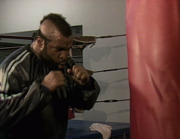 Gene Okerlund tries to get a word with Mr. T. “What do you want fool?” “I’m gonna smash the chump now get outta here”. This has come about because “Boxing” “Cowboy” “Ace” Bob Orton Jr has an open boxing challenge.