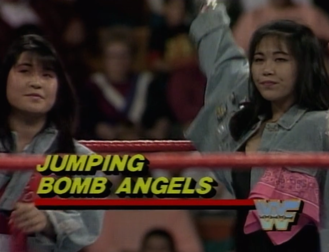 They’ve also gone and acquired some Japanese talent for the match; the Jumping Bomb Angels. A mainstay of AJW for the previous couple of years, they went on tour with the WWF in the summer and impressed enough to return here. This is the first time the WWF has really exposed them to a big TV audience. Sherri has new ring gear since switching to the WWF and it’s a nice black and white ensemble. WWF put the belt on her immediately. Who was champion? Moolah. She’s had it basically since the whole Wendi Richter angle tanked.