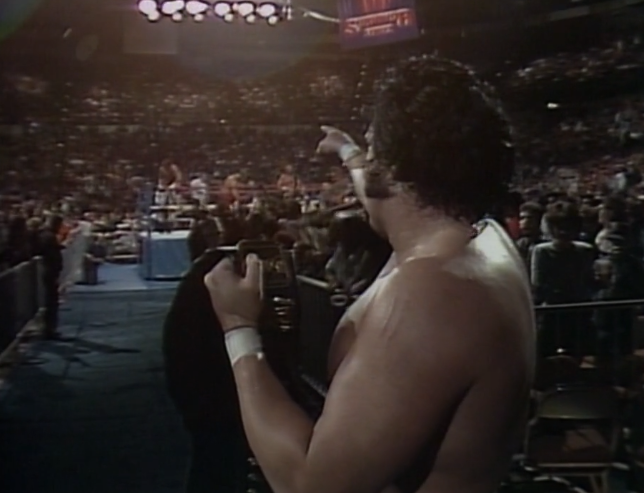 We get an interview with the heel team in tonight’s main event and Andre quotes from The Princess Bride by telling Hogan he’s “here for your soul”. Neat.