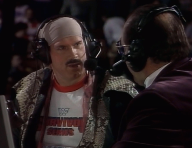Randy Savage is over huge now. It’s pretty clear the fans consider him to be one of the top, top guys in the business. Potentially there’s an interesting dynamic with Savage and Steamboat having so much history but it’s not touched on. We don’t start well as it’s Beefcake vs. Herc and Brutus fucks up the lock up. I like the concept of Survivor Series because around this time top guys never took clean jobs. Putting them five on five gave the opportunity for guys to actually lose, without hurting their characters or momentum.
