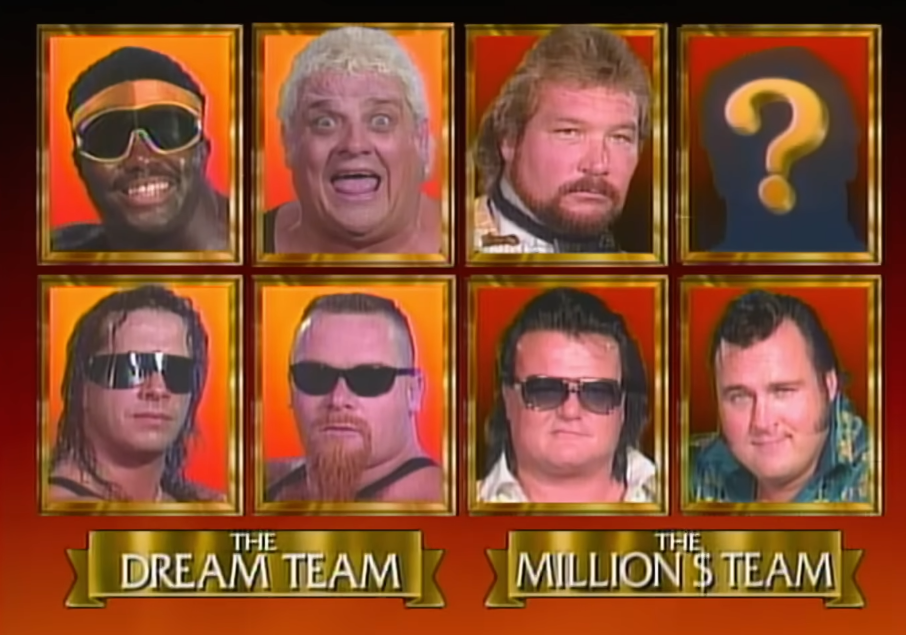 Dusty Rhodes, Hart Foundation & Koko B. Ware vs. Ted DiBiase, Honky Tonk Man, Greg Valentine & THE MYSTERY PARTNER