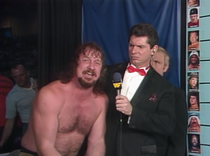 Look at Vince’s disdain here. At least Terry knows where the camera is! He once again demands Orndorff, so he can get the bounty, or Hogan.