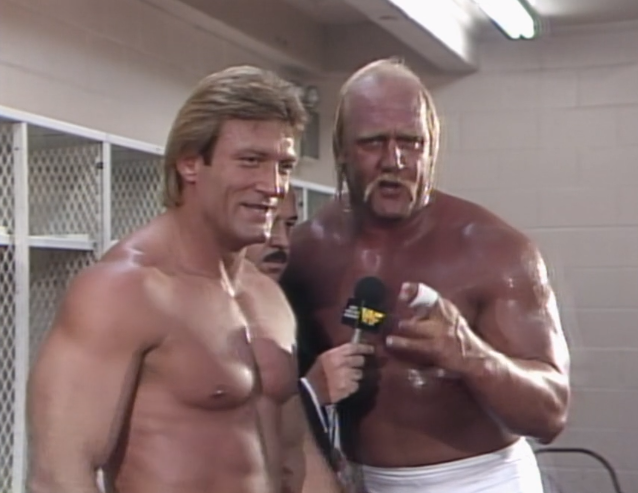 Video Control takes us backstage where Hogan says he and Mr Wonderful have each other’s backs. Well, Orndorff has Hogan’s back.