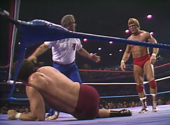 Video Control takes us backstage where Bobby Heenan reminds us there’s $50,000 on Paul Orndorff’s head, for whoever takes him out of wrestling.