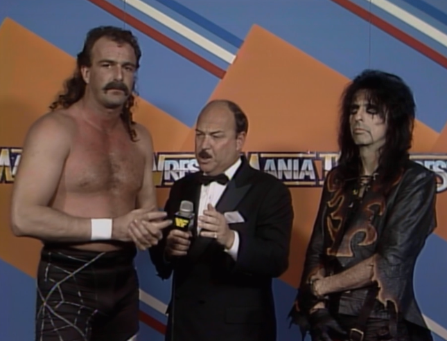 Just Jake Roberts, Gene Okerlund and Alice Cooper chilling out. A reminder to myself here that the ring girls here are called the “Federettes”. Which sounds like a special FBI bureau of women that they sent after Vince McMahon in the early 90s. Put his ass in jail!