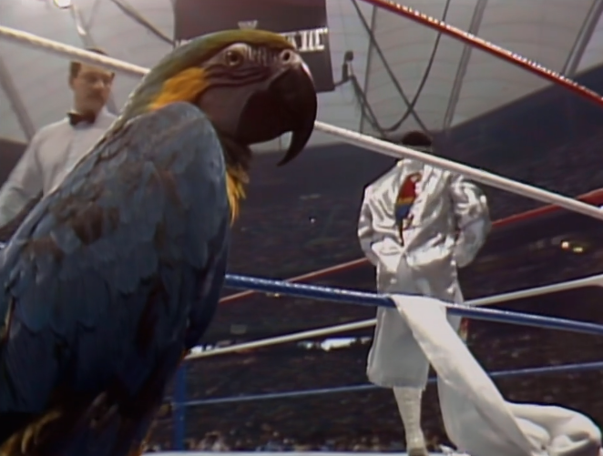 Why didn’t Frankie just fly off? I may need a bird expert to explain that one. While Koko was a popular talent and Vince was high on him, he’s small, which hampered his progress. Ventura says the B stands for Buckwheat and I’m always conscious that might be a racist thing but I literally have no idea. Seeing as Ventura refers to “but Buckwheat don’t” I think he might be referring to Buckwheat Zydeco. “He has a brother too, name of Stymie”. That might be racist, it’s a Little Rascals joke.