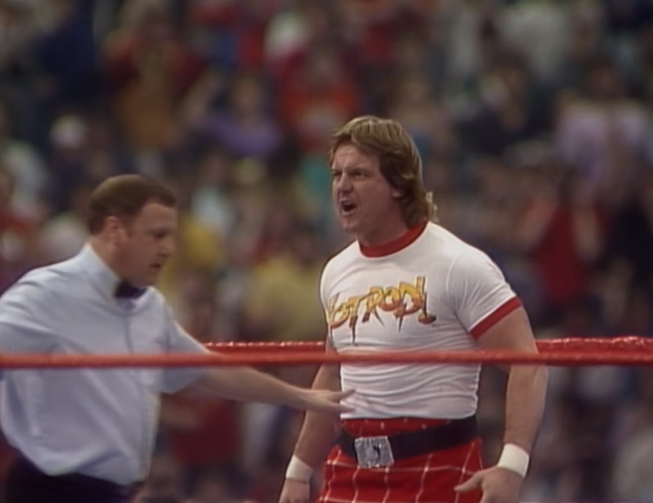 Vince was also high on Butch Reed. He is big; 6’2”, 260 lbs. Koko is 5’7”. He isn’t going over anyone. This is a weird match. It has a good tempo and Koko gets some shots in but then Reed just rolls through a crossbody for the pin. Slick lays Koko out for a laugh and Tito Santana runs in to tear up his WrestleMania fineries. Monsoon claims a handful of tights on the finish, but it looked pretty clean to me. Anyway, this was filler, and didn’t need to be on the show. It had zero hype beforehand.