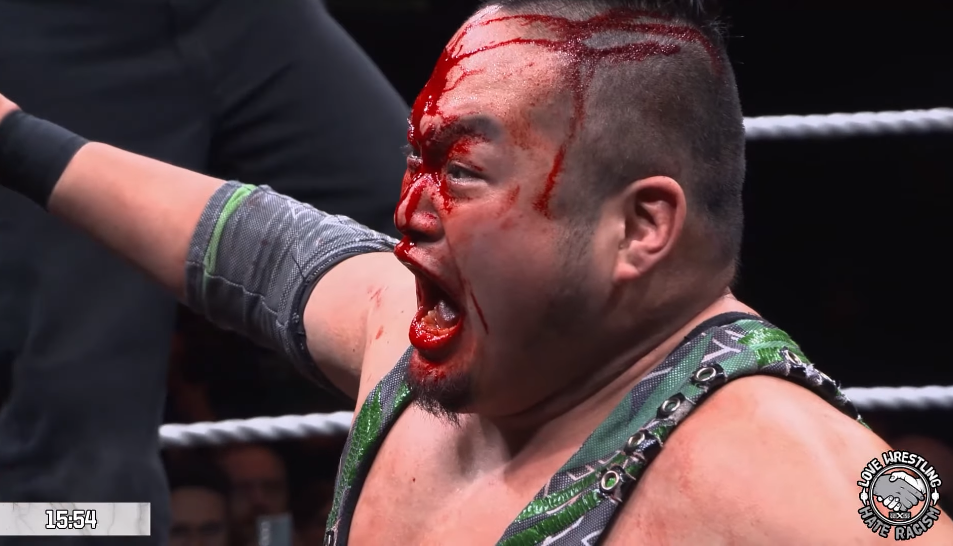 Now they can do fatigue selling and big shots and duelling and it feels appropriate because the babyface is so badly hurt. Irie brings everything he has, battering Dreissker with shot after shot but the blood loss catches up to him. Dreissker kicks him a few times right in the wound and hits the Dreisskerbomb to retain. The blood loss changed the way the match was put together but it was built as a war so I can forgive some of the sluggish pacing. ***¼.