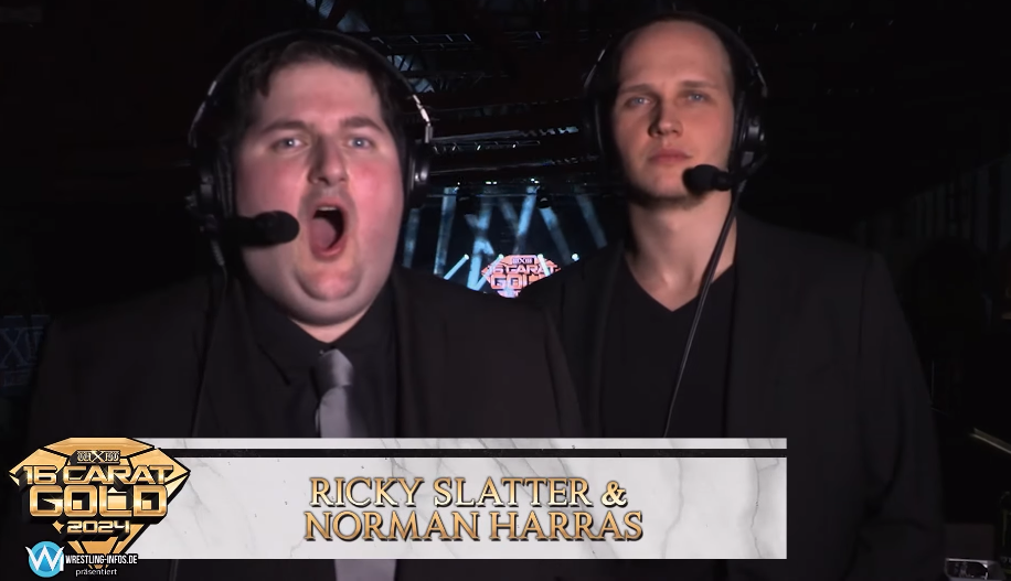 We’re in Oberhausen, once again, for a very, very long night two of 16 Carat Gold. We have the quarterfinals of the tournament, the big title match, a tag team gauntlet (groan) but also the Hall of Fame induction for Absolute Andy. In total we’re in the Turbinenhalle for 4h23m today.