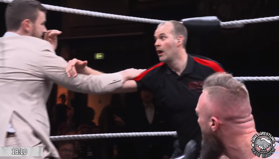 Is there a worse match type in wrestling than the tag team gauntlet? It seems wXw don’t agree with me because here we are. Big Bucks (Norman Harras & Alex Duke) kick us off. Harras was on commentary, so Slatter is going solo for this match. Team two is Anita Vaughan & Oskar. This is boring. Duke even resorts to a chinlock. The crowd seem invested in it, in all fairness. Big Bucks pin Anita after Norman nut shots Oskar. This felt like it went on for a long time, but it was only 6:00.