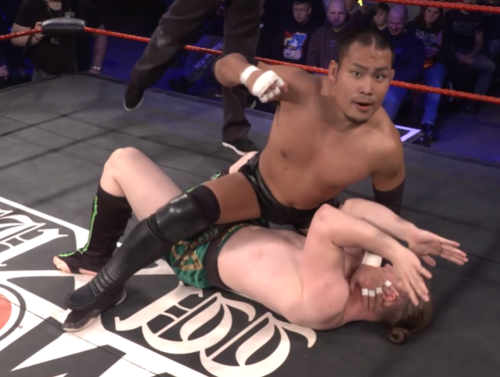 Sexy Kev! This is Lloyd’s third AMBITION tournament. He’s never won a match! This is much more to style. Gunns tries low kicks until Lloyd goes after his leg. They do some tasty reversals on the mat and Kev does a grand job of defensive mat wrestling. Often fighting out of Gunns’ more aggressive mat attacks. They trade on suplexes but Gunns headbutts Lloyd in the chest for the KO. Poor Kev, 0-3 at AMBITION. This was tidy. Lloyd is underrated as a grappler.