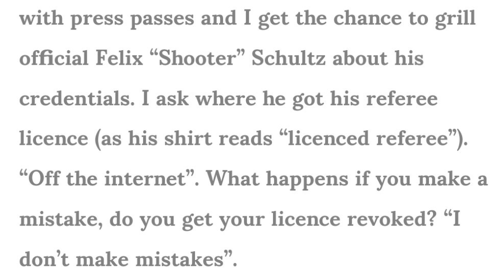 To add to the madness, Bork is accompanied by Thorsten Legat. Former Bochum, Werder Bremen, Frankfurt, Stuttgart and Schalke midfielder turned German reality TV presenter. Legat’s career includes being fired by Stuttgart for racially abusing a teammate and pulling a samurai sword on a bunch of teenagers. He comes out here, head to toe, in white sweats and looks like a complete tool. If I’d paid front row ticket prices to have my view of the ring blocked by a six foot former Bundesliga player, I think I’d be a little hot about it.