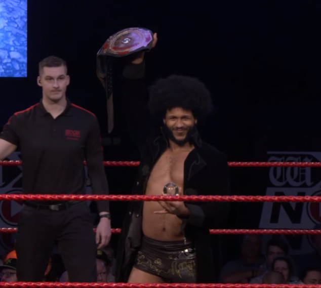 Black came into the scene during Covid, so I don’t know him. Trivet was a passable midcard heel act in Progress about 4 years ago. Until he formed that dreadful Do Not Resuscitate stable. I’m surprised to discover Trivet unseated Big Damo as Progress champion. Huh. He’s aged over the past four years and seems to have misplaced his hair. Trivet has an intensity and cleanliness about his basics that is refreshing after that last match.