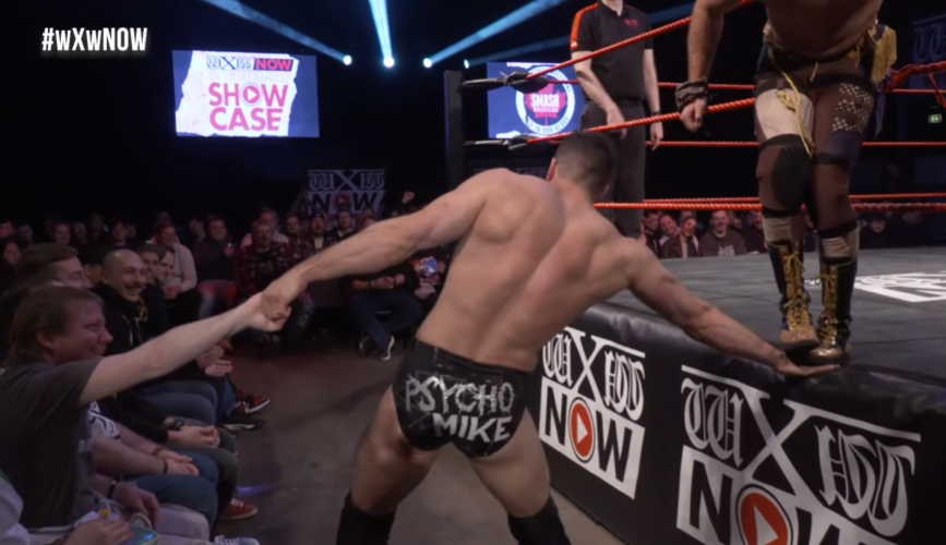 I saw him work in Smash a few years ago and he’s developed a fully blown version of his former self. It’s great character work. Is he working WrestleMania weekend? He should be. Crowley’s falsetto voice is weird, and I get that his gimmick is a bit strange but it’s not coming across like Mike’s is. It’s supposed to be a circus variety act with a layer of weirdness over it. There’s something in there somewhere but it’s not working for me in the current incarnation. Psycho Mike finishes with a brainbuster. Psycho Mike is the ideal indie gimmick where he’s come up with three bits that work (hardcam, bodyslam, “I dare you”), and he just does that along with some decent powerhouse offence sprinkled in. I don’t think this qualifies as a good match, but Mike’s gimmick is fantastic and that’s the kind of thing you remember from a weekend.